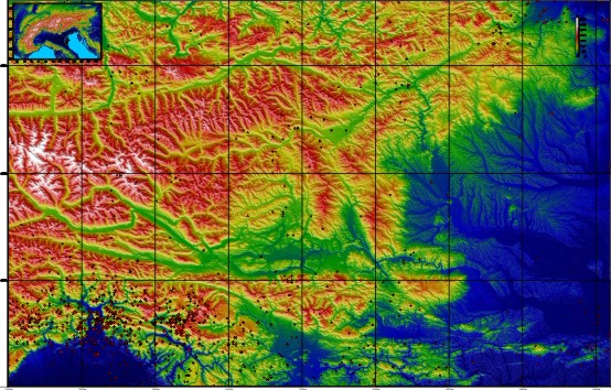 | FIRST STEPS One of the exiting aspects for the Graz group of the Topo-Alps project if the fact that our end of the Alps is the only part of the range that was not glaciated during the last glaciation periods. As such, the morphometric evidence of the Miocene landscaper evolution is partly preserved. A map of the eastern end of the Alps (made by TopoAlps PhD student Nicolas Legrain) illustrates this. |